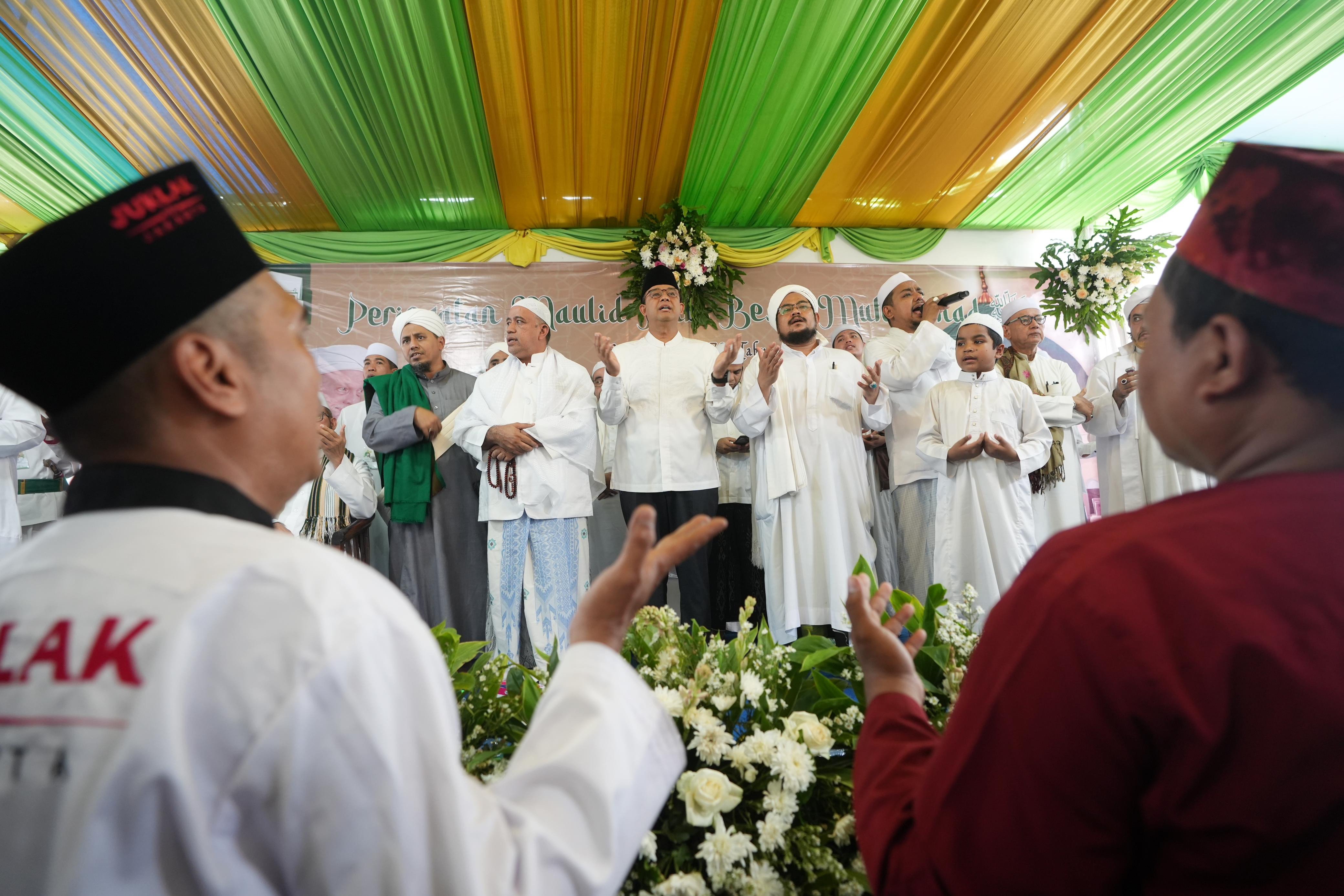 JPNN.com, JAKARTA – Bacapres dari Koalisi Perubahan untuk Persatuan Anies Baswedan menghadiri Maulid & Haul Habib Umar bin Abdurrahman Al-Atthos di Majelis Darul Musthofa al-Madinatul, Jakarta Selatan, Selasa (7/11).