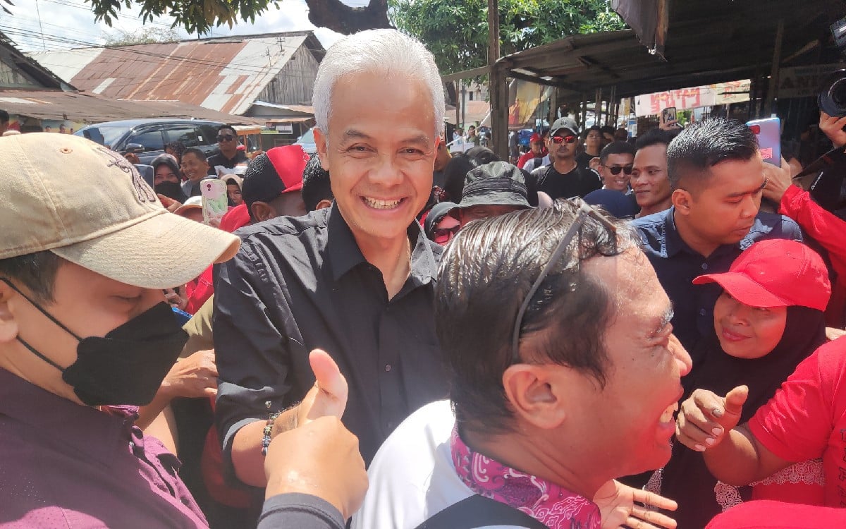JPNN.com, KUTAI KARTANEGARA – Capres nomor urut 3 Ganjar Pranowo melaksanakan kampanye hari kesembilan dengan blusukan ke Pasar Loa Kulu, Jalan Jendral Sudirman, Loa Kulu Kota, Kabupaten Kutai Kartanegara, Kalimantan Timur (Kaltim), Rabu (6/12).