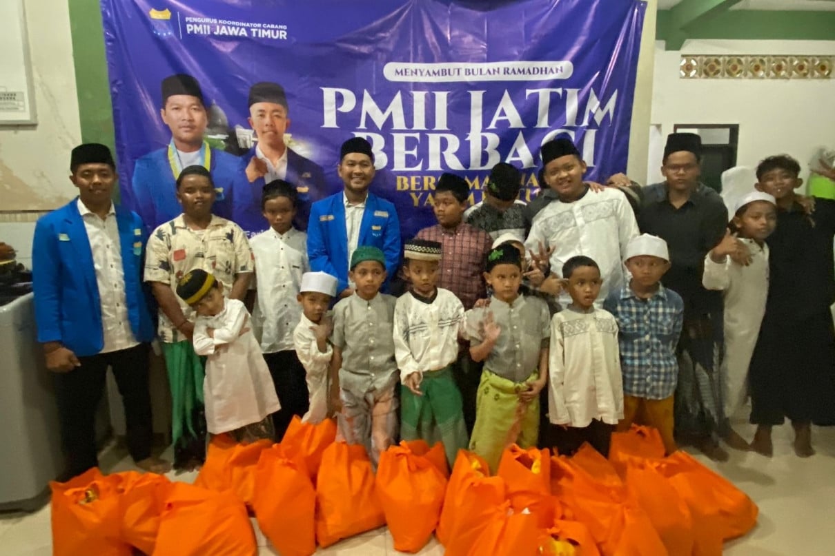 jatim.jpnn.com, SURABAYA – Pengurus Koordinator Cabang Pergerakan Mahasiswa Islam Indonesia (PKC PMII) Jawa Timur memberikan santunan kepada anak yatim piatu di Panti Asuhan Yatim Cahaya Insani Surabaya, Senin (4/3) malam.